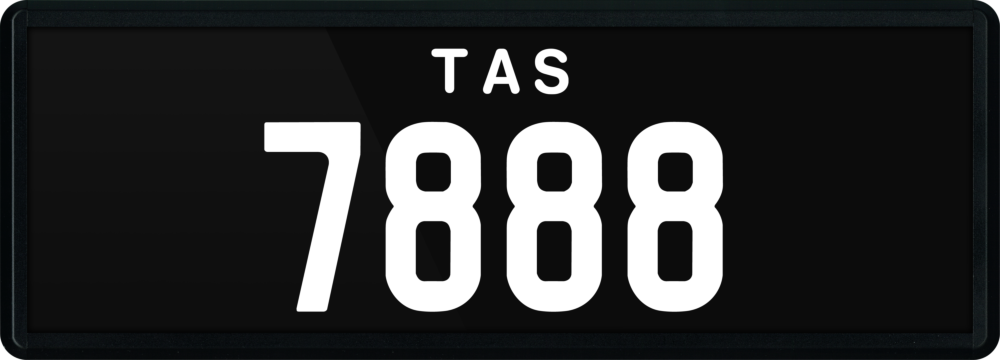 A striking plate with repeating 8s that symbolize luck and success. The 7 adds a touch of wisdom, making it meaningful and eye-catching. The plate is made from acrylic clear polymer and is set into a black anodised aluminium frame. It features white characters on a black background, with the state identifier positioned on the top of the plate.